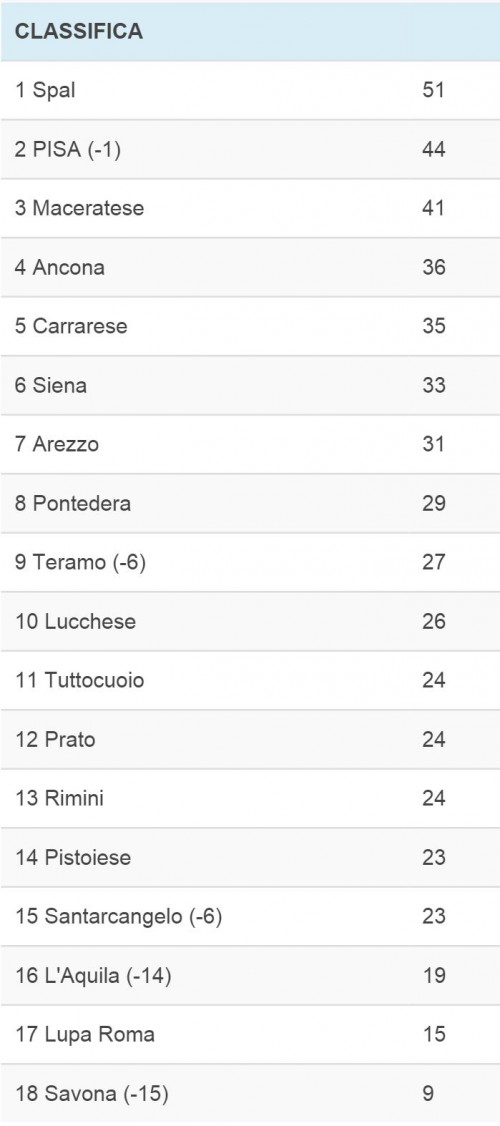 Classifica e risultati della giornata 23 del Girone B di Lega Pro, si apre con Savona – L’Aquila