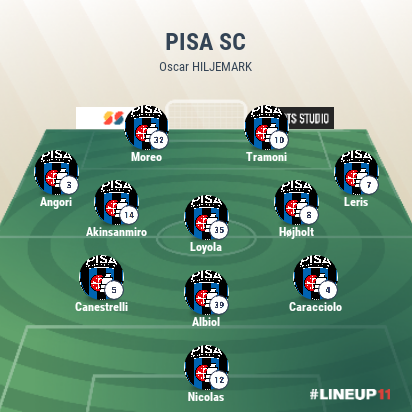 PISA. Nicolas, Angori, Caracciolo, Canestrelli (76′ Iling-Junior), Leris, Højholt, Tramoni (76′ Piccinini), Akinsanmiro (46′ Meister), Moreo (51′ Stojilkovic), Loyola (64′ Stengs), Albiol. Allenatore : Hiljemark. A disposizione : Semper, Luppichini, Bozhinov, Touré, Coppola, Calabresi, Bettazzi, Lorran.