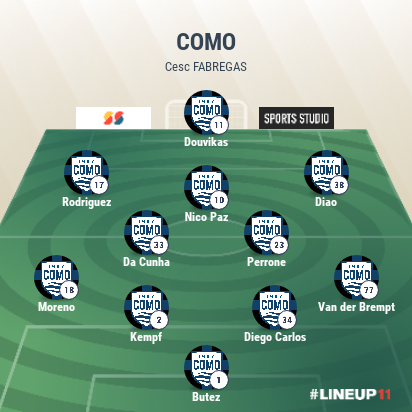 COMO. Butez, Kempf, Paz, Douvikas (59′ Morata), Rodriguez (37′ Baturina), Moreno, Perrone, Da Cunha (59′ Caqueret), Diego Carlos (77′ Goldaniga), Diao (77′ Kuhn), Van der Brempt. Allenatore : Fabregas. A disposizione : Tornqvist, Vigorito, Cavalina, Valle, Sergi Roberto, Lahdo, Smolcic, Vojvoda, De Paoli.