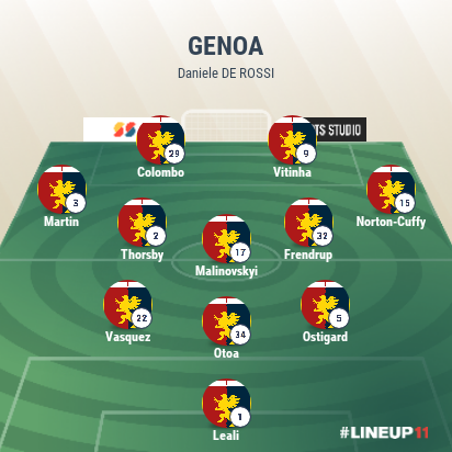 GENOA. Leali, Thorsby (64′ Ekhator), Martin, Ostigard, Vitinha, Norton-Cuffy (76′ Ellertsson), Malinovskyi, Vasquez, Colombo (76′ Ekuban), Frendrup, Otoa (84′ Marcandalli). Allenatore De Rossi. A disposizione : Lysionok, Sommariva, Stanciu, Sabelli, Carboni, Cuenca, Fini, Masini, Venturino.