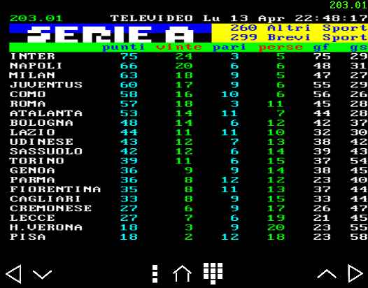 L’Inter ribalta il Como e mette le mani definitivamente sullo Scudetto : il Napoli infatti non va oltre il pareggio in quel di Parma mentre il Milan cade rovinosamente a San Siro sotto i colpi dell’Udinese. La Juventus sbanca Bergamo e si porta al quarto posto in classifica, bene anche il Bologna che piega il Lecce e continua a sperare nell’Europa per la prossima stagione. Vittorie di capitale importanza per Fiorentina e Genoa che superano rispettivamente Lazio e Sassuolo e vedono la salvezza davvero ad un passo ; stesso discorso vale per il Torino che condanna praticamente il Verona. Va al Cagliari un drammatico scontro diretto contro la Cremonese. Risultati serie A giornata 32.
